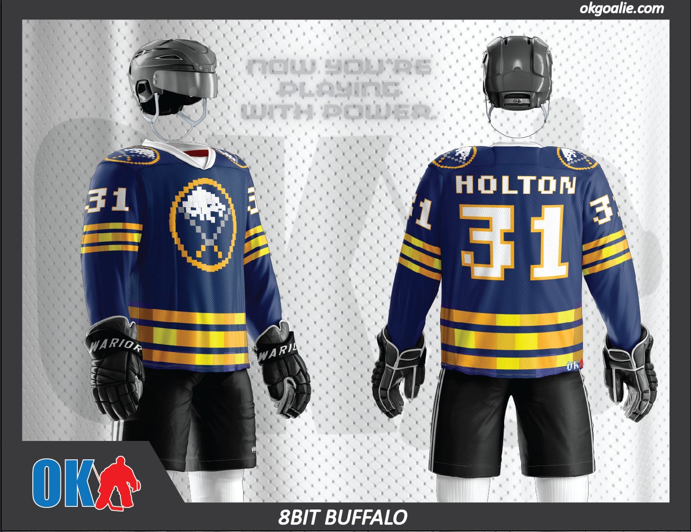 Parody jerseys from your favorite cities! Wear an 8-Bit old school Nintendo looking hockey jersey of your favorite team. Brilliant fully sublimated lightweight jerseys are perfect to wear on the ice, to the game or at your local sports bar. Jerseys come in all normal sizings S, M, L, XL, XXL, and 3 sizes of goalie cut, for one low price. Please allow 6 weeks for shipping due to the custom nature of the product. Add your custom name and jersey number in the customization field then choose which jersey mesh you want (standard mesh or lightweight)