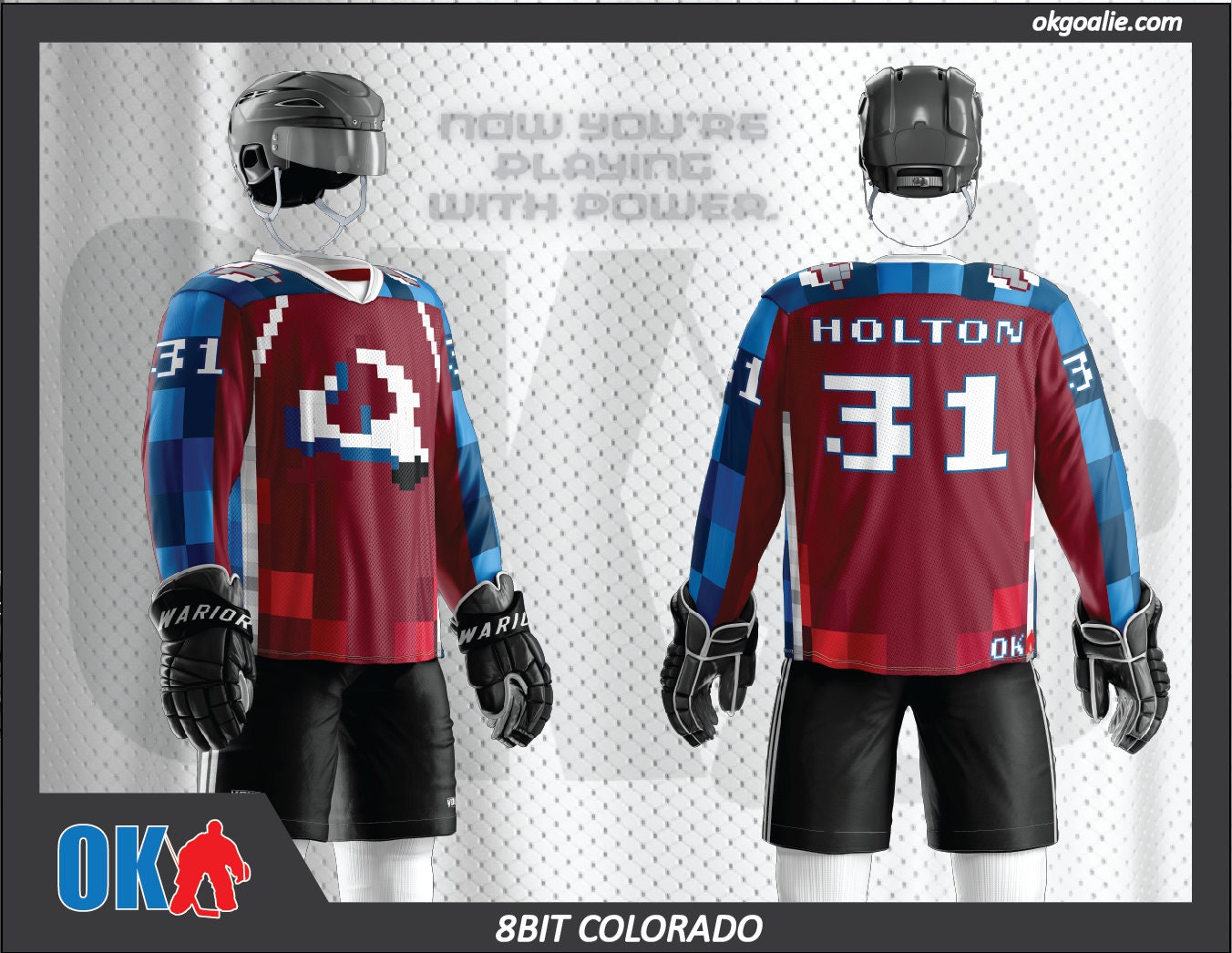 Parody jerseys from your favorite cities! Wear an 8-Bit old school Nintendo looking hockey jersey of your favorite team. Brilliant fully sublimated lightweight jerseys are perfect to wear on the ice, to the game or at your local sports bar. Jerseys come in all normal sizings S, M, L, XL, XXL, and 3 sizes of goalie cut, for one low price. Please allow 6 weeks for shipping due to the custom nature of the product. Add your custom name and jersey number in the customization field then choose which jersey mesh you want (standard mesh or lightweight)