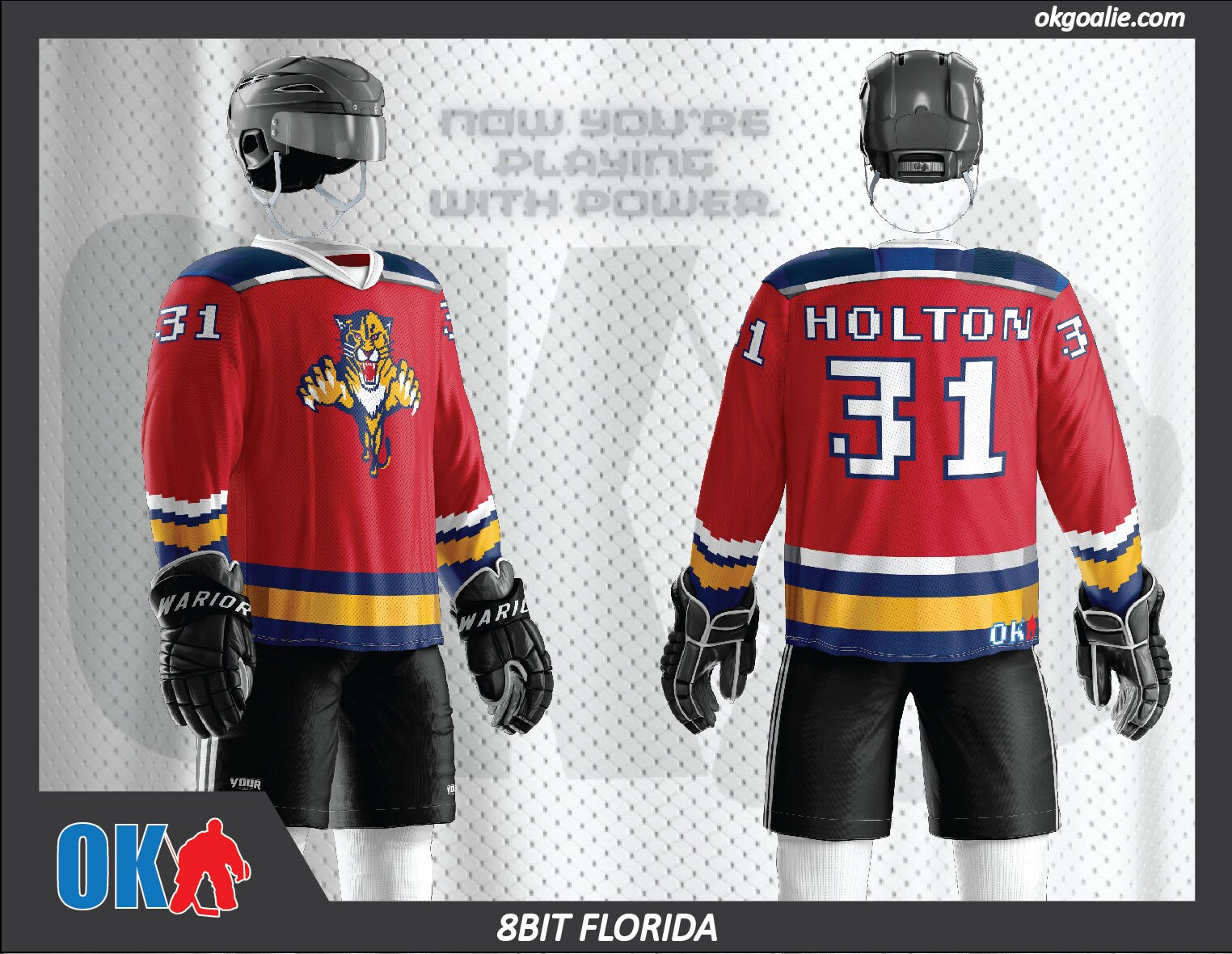 Parody jerseys from your favorite cities! Wear an 8-Bit old school Nintendo looking hockey jersey of your favorite team. Brilliant fully sublimated lightweight jerseys are perfect to wear on the ice, to the game or at your local sports bar. Jerseys come in all normal sizings S, M, L, XL, XXL, and 3 sizes of goalie cut, for one low price. Please allow 4-6 weeks for shipping due to the custom nature of the product. Add your custom name and jersey number in the customization field then choose which jersey mesh you want (standard mesh or lightweight)