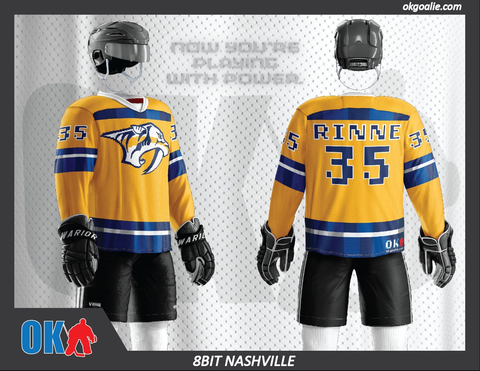 Parody jerseys from your favorite cities! Wear an 8-Bit old school Nintendo looking hockey jersey of your favorite team. Brilliant fully sublimated lightweight jerseys are perfect to wear on the ice, to the game or at your local sports bar. Jerseys come in all normal sizings S, M, L, XL, XXL, and 3 sizes of goalie cut, for one low price. Please allow 4-6 weeks for shipping due to the custom nature of the product. Add your custom name and jersey number in the customization field then choose which jersey mesh you want (standard mesh or lightweight)