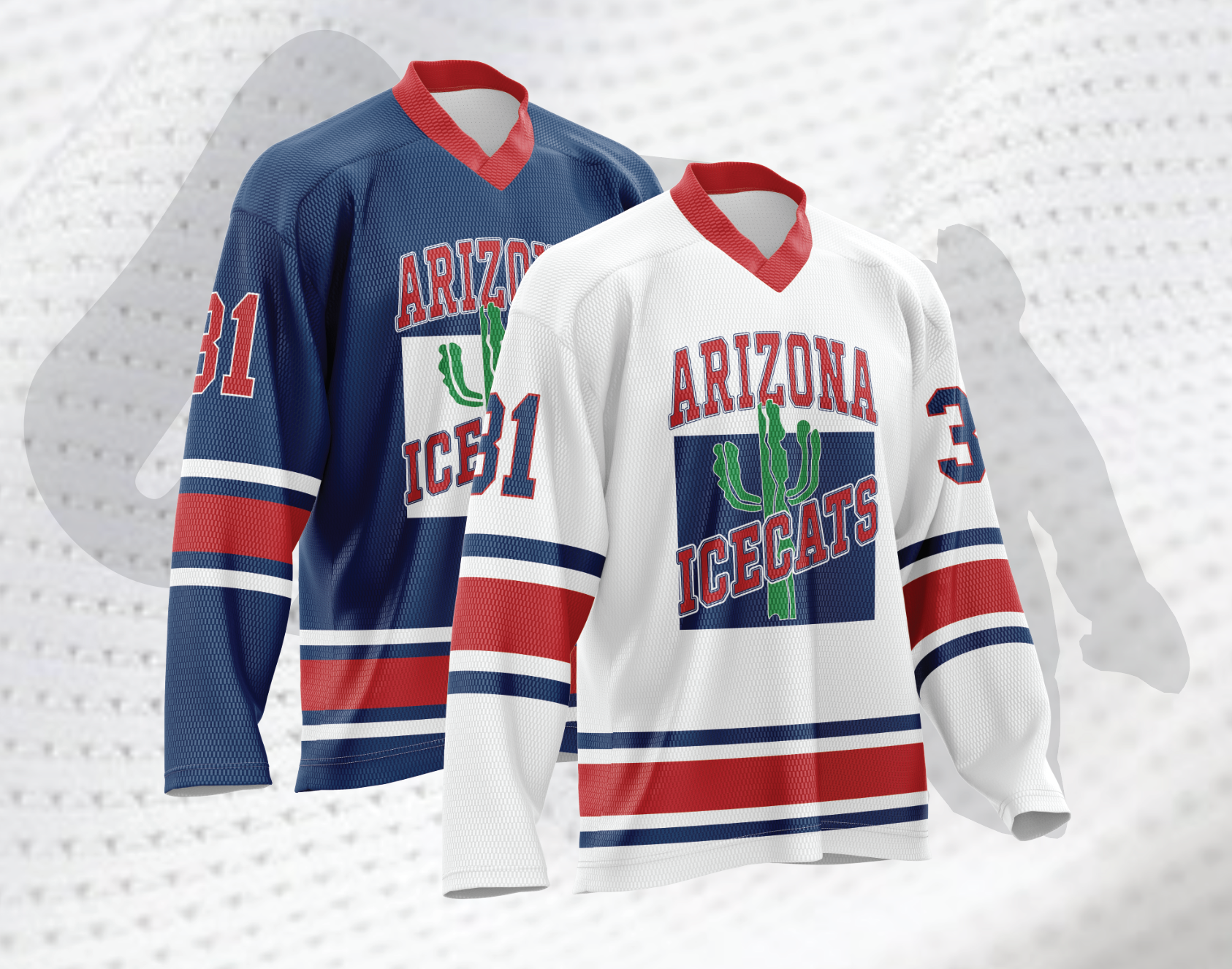 The Arizona Icecats were started by Head Coach and General Manager Leo Golembiewski in 1979 as a Divsion-1 non-varsity hockey team, and originally played under the name of the Arizona IceCats. The Icecats were a founding member of the American Collegiate Hockey Association (ACHA, est. 1991). In 2011 the university officially assumed control changing the team to the Wildcats. The history of the Icecats was rich with victory with an overall record of 634–217–23. They won a national championship (1985), appeared in eight Final Fours (’84, ’86, ’87, ’88, ’91, ’93, ’94, ’97) and ten Elite Eights. Get your piece of Arizona hockey history with an Icecat hockey jersey.