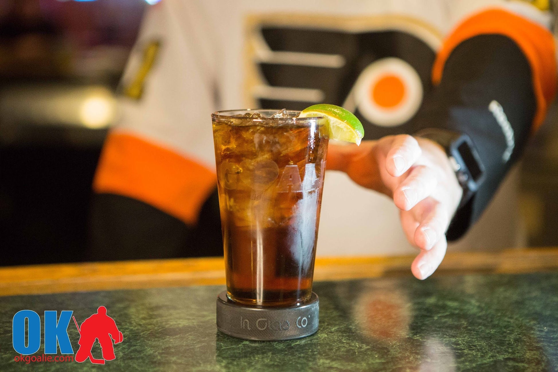 Crease Coasters are here! This set of 8 drink stands are made from real ice hockey pucks. Designed to hold a pint glass and absorb the condensation and liquid from the glass. The cork lined bottom is the perfect match up with the vulcanized rubber of the puck to be both durable and practical. Show off your love for hockey with a set of Crease Coasters.