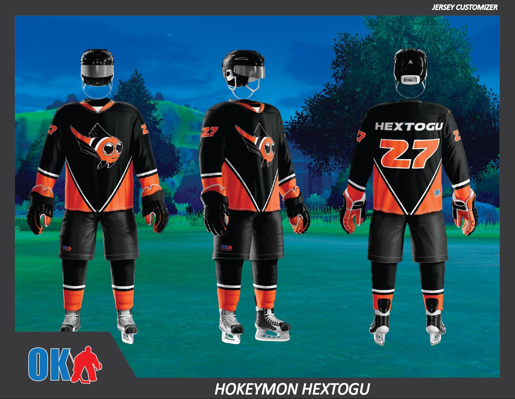 Introducing the first from a new series of jerseys, Hokemon! This fun hockey jersey debuts Hextogu and he's ready to play hockey. Add your custom name and jersey number in the customization field then choose which jersey mesh you want (standard mesh or lightweight). Please allow 4-6 weeks to get through production, each jersey is produced, cut and sewn to order.