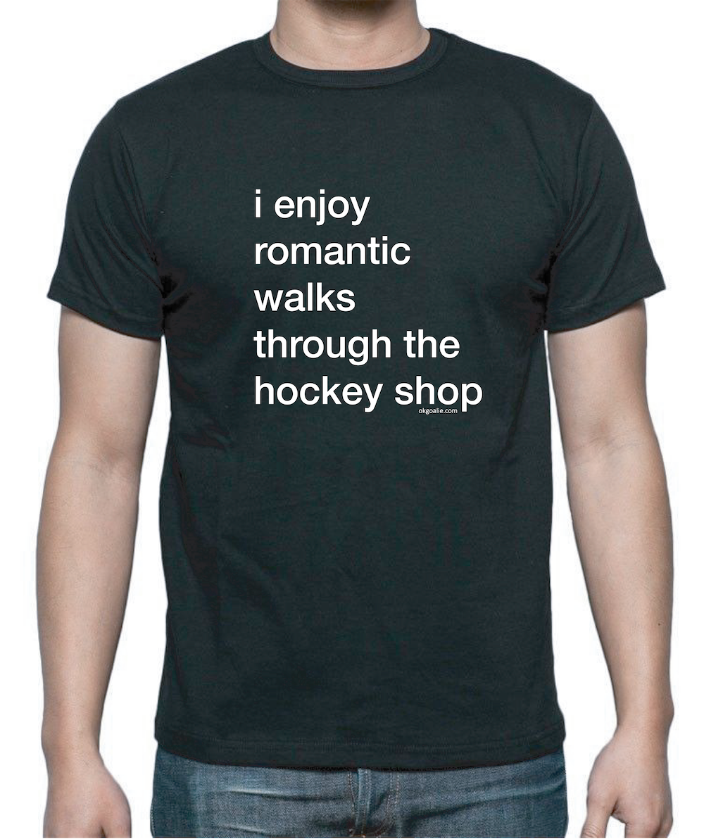 For the true romantics—the ones who swoon over new sticks, fresh tape rolls, and that perfect jersey on the rack. Our ‘I Enjoy Romantic Walks Through the Hockey Shop’ tee lets everyone know your love language is hockey gear. Wear it to the rink, the shop, or date night (because honestly, they’re all the same thing).