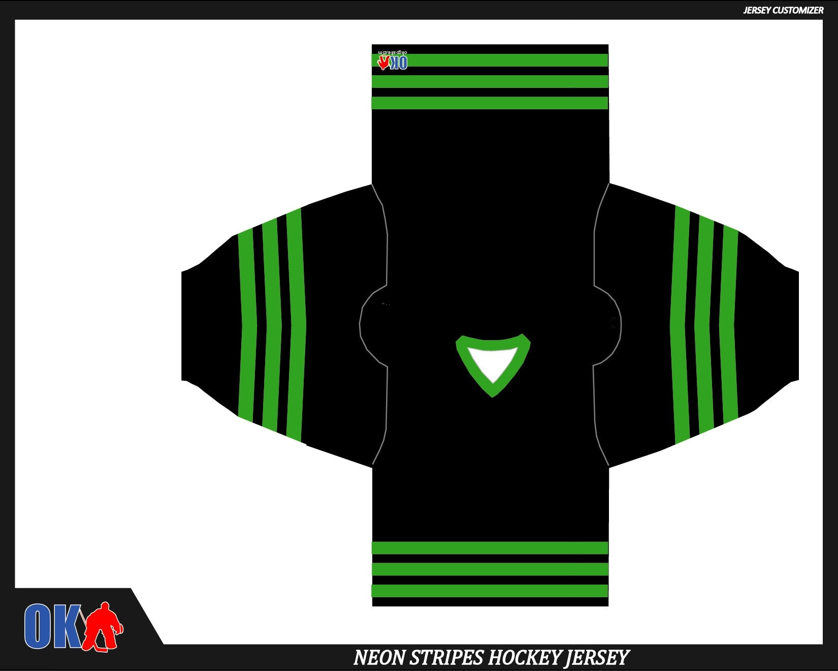 This bold neon look comes across strong and is sure to set you apart from the traditional striping on most hockey jerseys. Customize your's with a name and number on the back and arms then choose which jersey mesh you want (standard mesh or lightweight) as well as a logo provided by you or let's work on one together at no extra charge (up to 1 hour of design time free). Message the shop to start the process! Brilliant fully sublimated lightweight jerseys are perfect to wear on the ice, to the game or at your local sports bar. Jerseys come in all normal sizings Youth, S, M, L, XL, XXL, and 3 sizes of goalie cut, for one low price. Please allow 4-6 weeks for shipping due to the custom nature of the product.