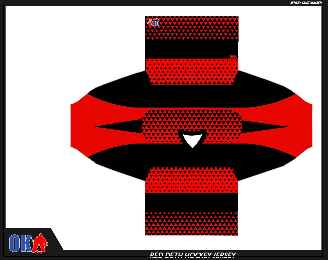 This bold and aggressive pattern will catch the entire rink's eye and is sure to set you apart from the traditional striping on most hockey jerseys. Customize your's with a name and number on the back and arms as well as a logo provided by you or let's work on one together at no extra charge (up to 1 hour of design time free). Also choose which jersey mesh you want (standard mesh or lightweight). Message the shop to start the process! Brilliant fully sublimated lightweight jerseys are perfect to wear on the ice, to the game or at your local sports bar. Jerseys come in all normal sizings Youth, S, M, L, XL, XXL, and 3 sizes of goalie cut, for one low price. Please allow 6 weeks for shipping due to the custom nature of the product.
