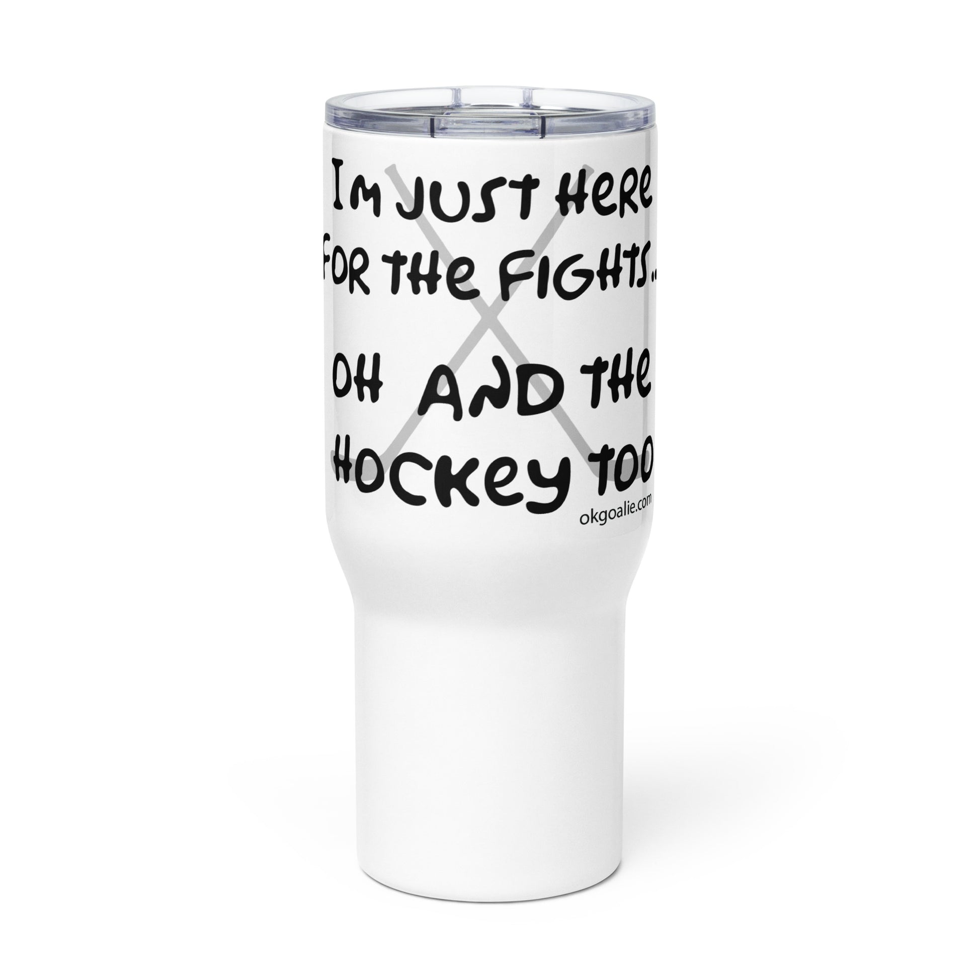 What's hockey without some fighting? Sip in style and comfort with an elevated travel mug. With its sleek and durable design, you’ll love taking this mug wherever you go. It fits into most car cup holders and has a spill-proof plastic lid. Commute to work or go on new adventures—this travel mug will keep your beverage safe and at just the right temperature.