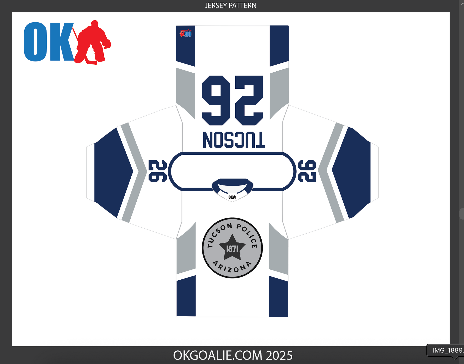 Suit up like Tucson’s finest with this Tucson Police replica hockey jersey, inspired by the annual Police vs. Firefighters charity showdown at Tucson Arena. Built for fans, collectors, and anyone who loves a little desert-city rivalry, this jersey brings the badge-blue pride to the ice. Premium materials, bold department-inspired detailing, and an authentically styled pro-cut design make it perfect for game night or just patrolling Fourth Ave in style.
